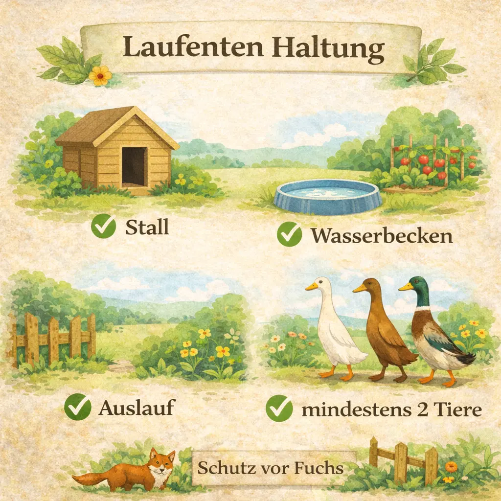 Ja – aber mit Vorbereitung. Wer sich vorher informiert, hat keine großen Hürden. Laufenten sind robuster als viele denken, verzeihen kleine Anfängerfehler und zeigen deutlich, wenn etwas nicht stimmt.